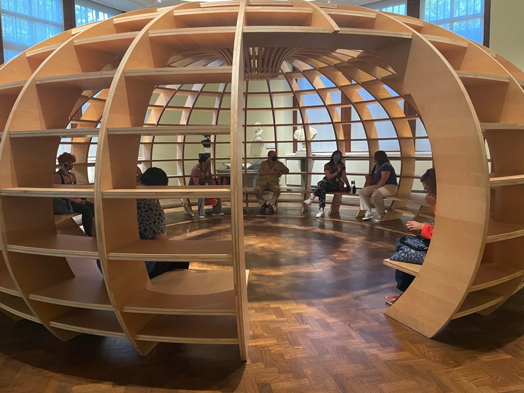I’m still impressed by the pods forms, the middle one dissapears into the circular opening in the ceiling, looks like a space ship about to take off.