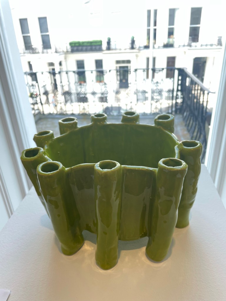 I really like the contrast between the original and elegant shape and the pops of colour within it.
